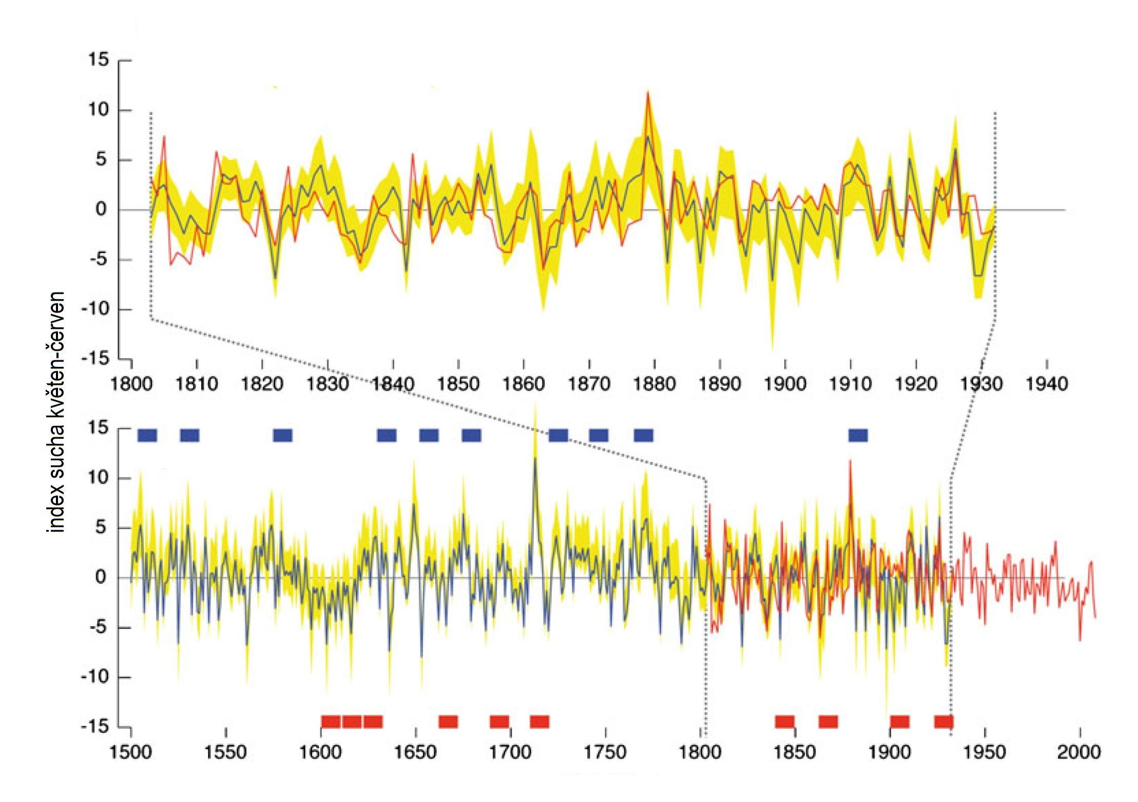 BÜNTGEN U., BRÁZDIL R., DOBROVOLNÝ P., TRNKA M., KYNCL, T.: Five centuries of Southern Moravian drought variations revealed from living and historic tree rings. Theoretical and Applied Climatology, 105:167-180 (2011).
